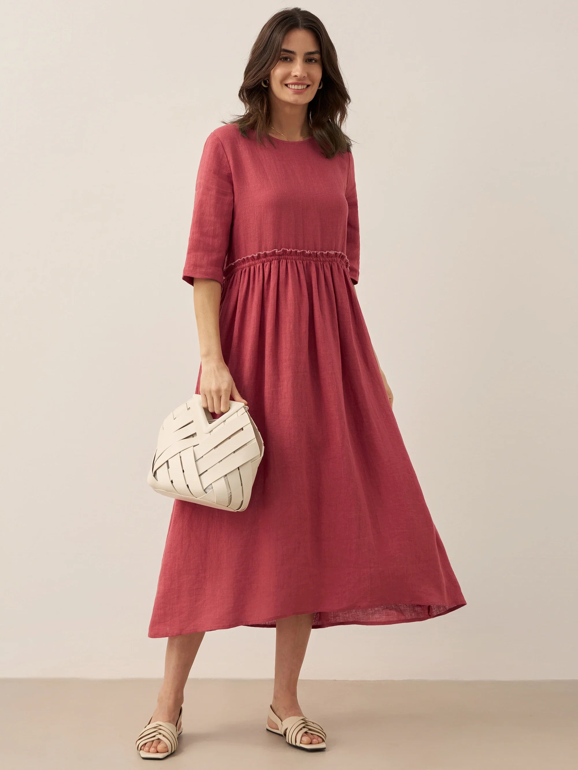 This is my favorite dress! It fits week, it’s comfy, and spans the seasons. I would purchase an additional multi-season color(s) if available.