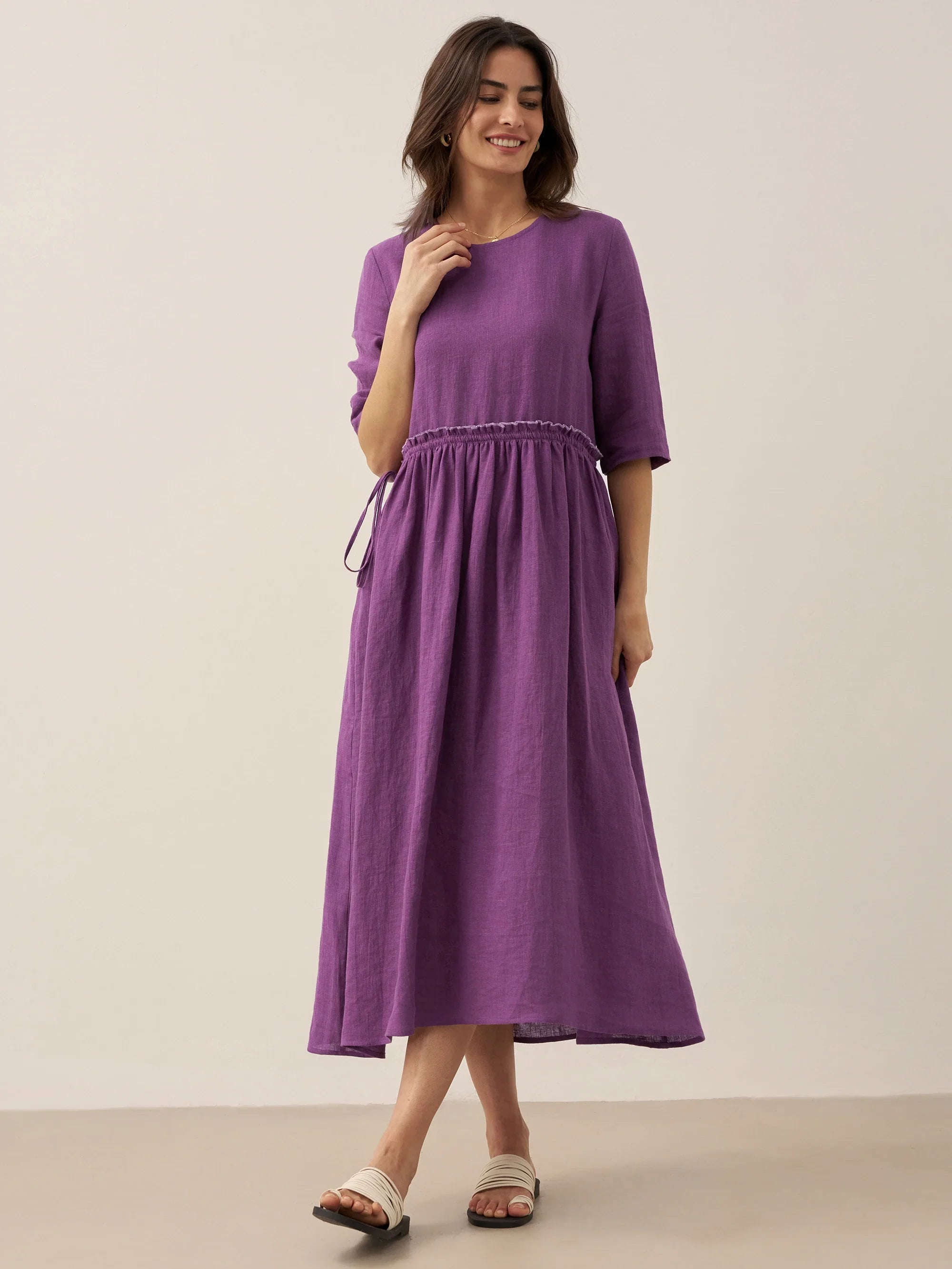 I bought this dress several weeks ago and wore it for the first time today. I really like it. Comfortable and attractive. With pockets!!! Have not laundered it yet, so not sure how it will fare. Am hopeful. Will buy another.