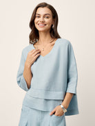 100% Linen Drop Shoulder Asymmetric Layered Hem Overtop VIOLA
