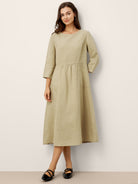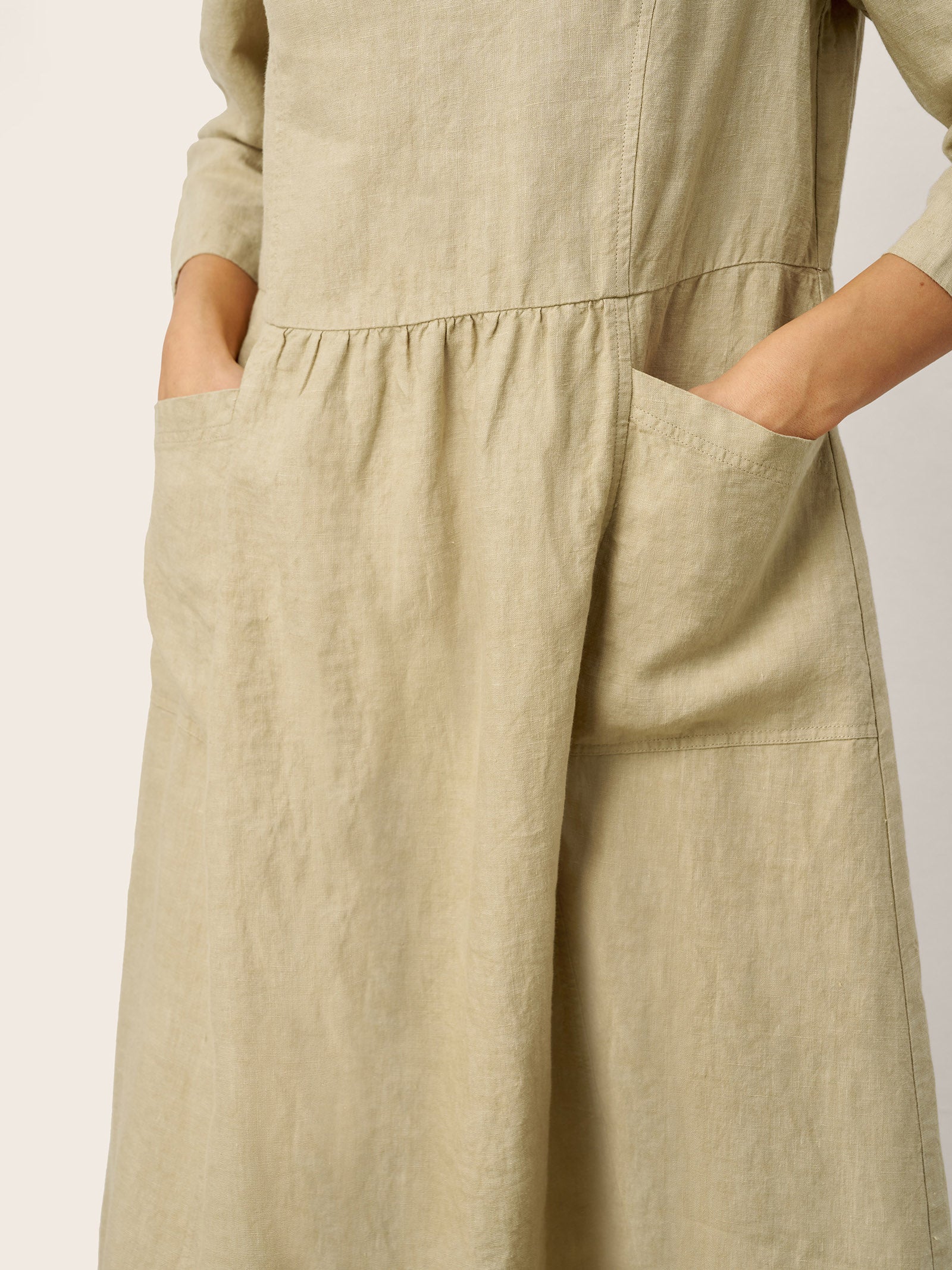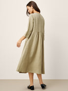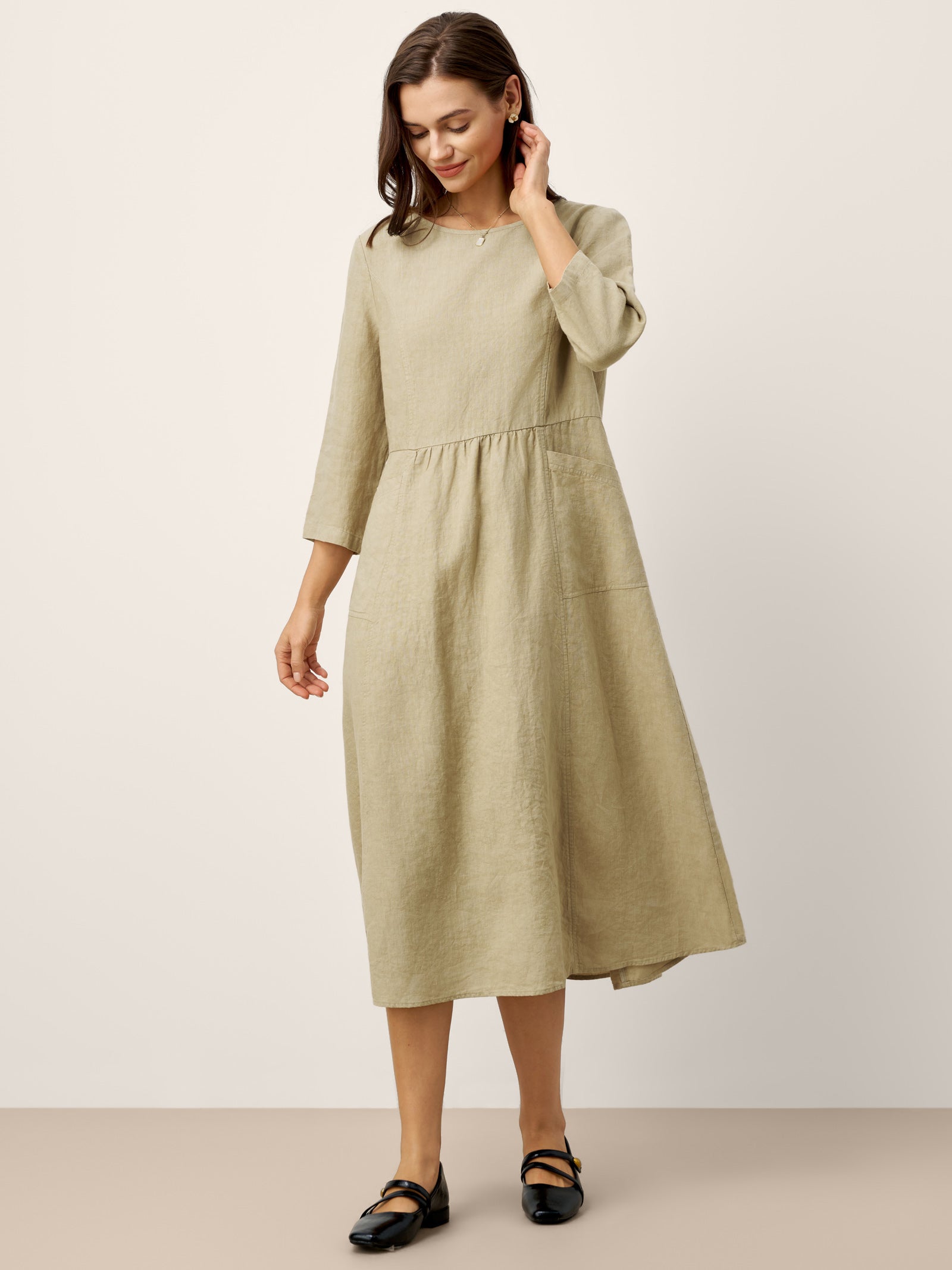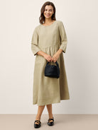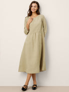 100% Linen Shirred Waistline Patch Pocket Maxi Dress MARTHA