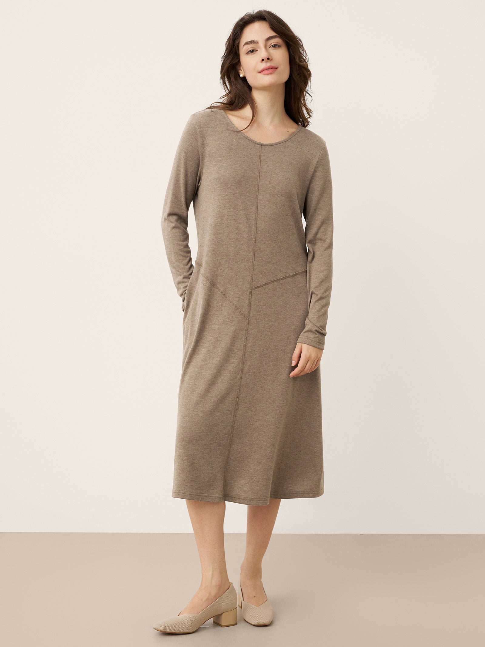 Cashmere Crew Neck Sculpted Seam A-Line Midi Dress HARLOW